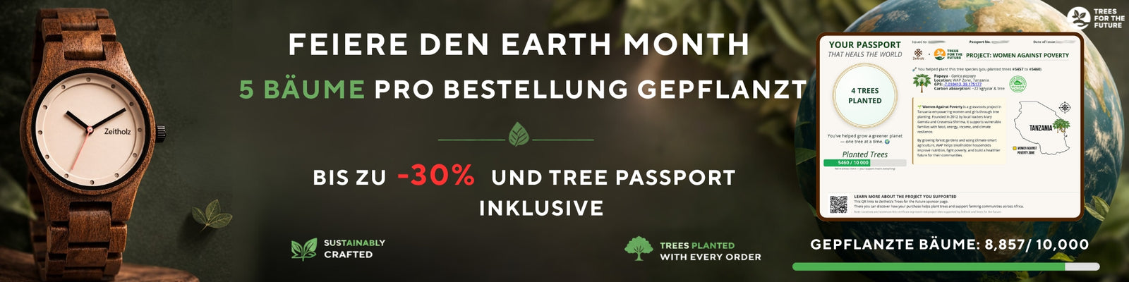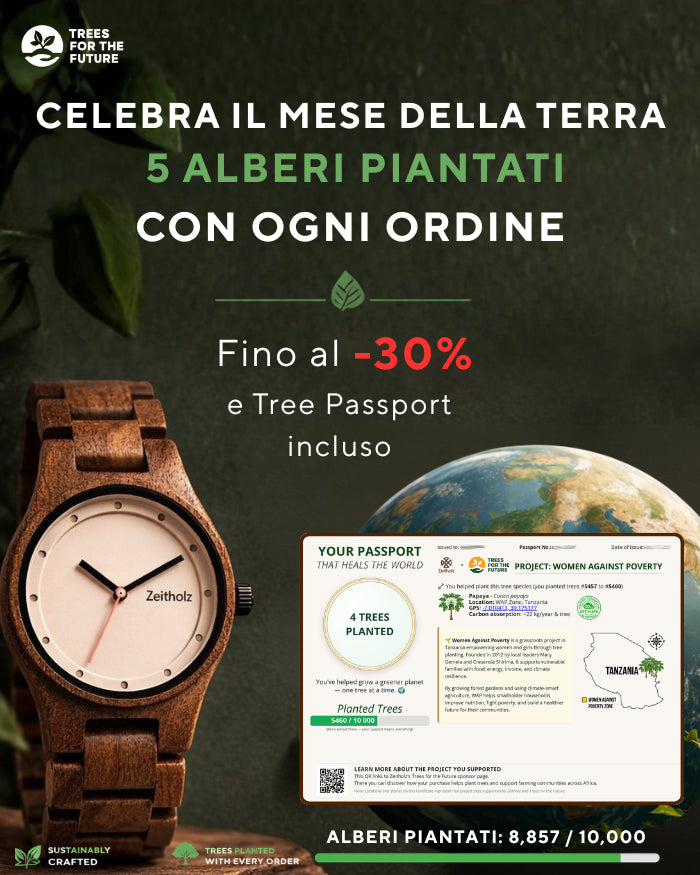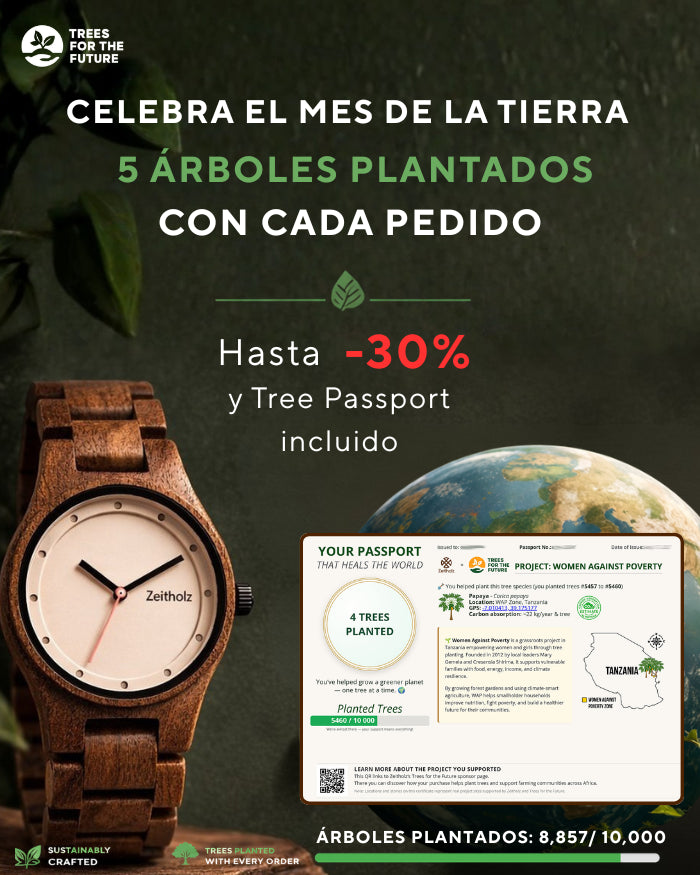 Your watch comes with a personalized Tree Passport, showing your tree’s species, location, and impact.