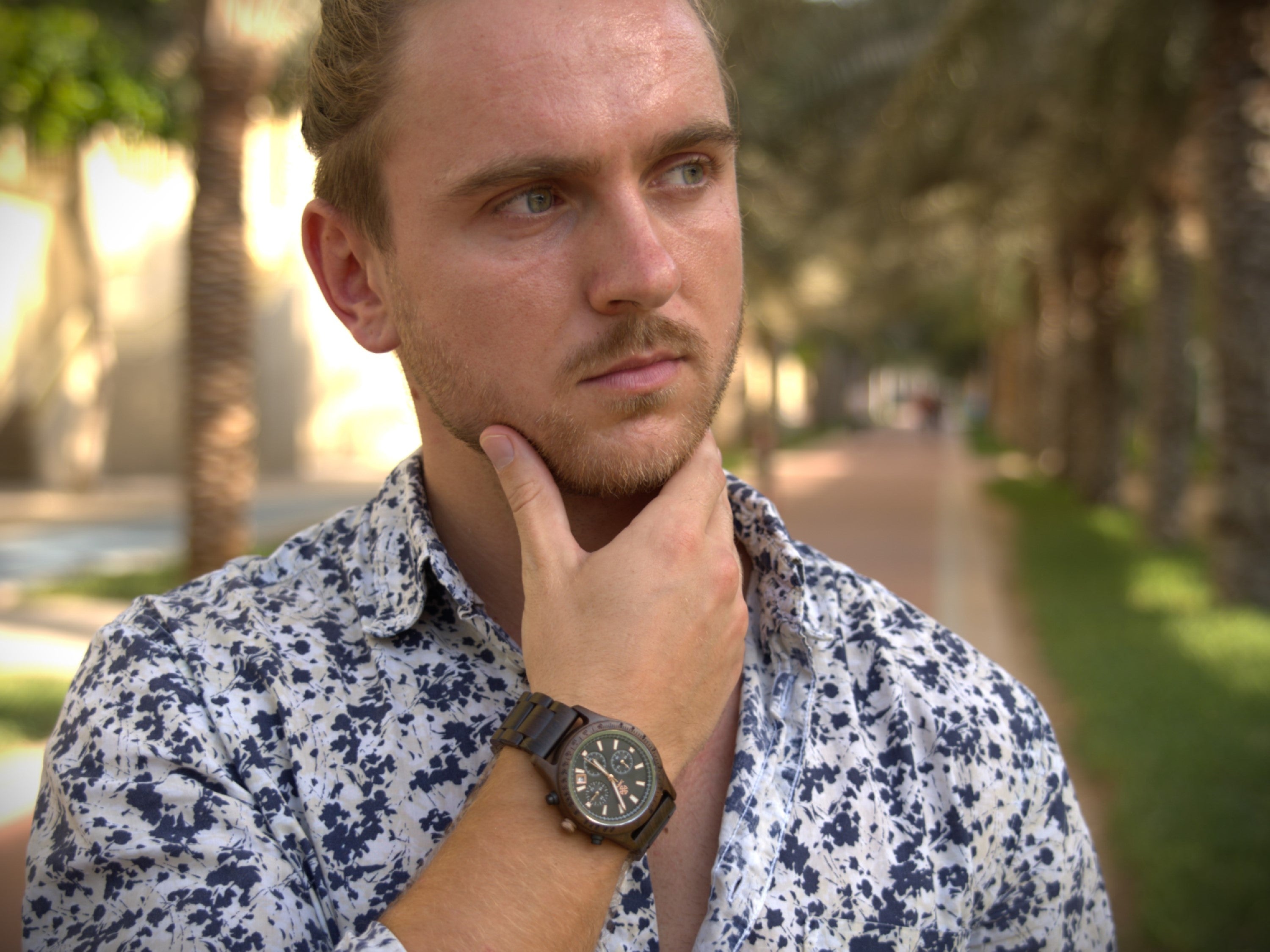 Fabriqué en bois de santal noir 100 % naturel et doté d'un design très sportif, le chronographe Bergen est un garde-temps vraiment unique. Les indices et les aiguilles raffinés ainsi que les nouveaux poussoirs et la couronne métallique ajoutent une touche d'élégance au look sportif de la montre. Le boîtier de 42 mm et le bracelet réglable permettent à la Bergen de convenir à tous les poignets.