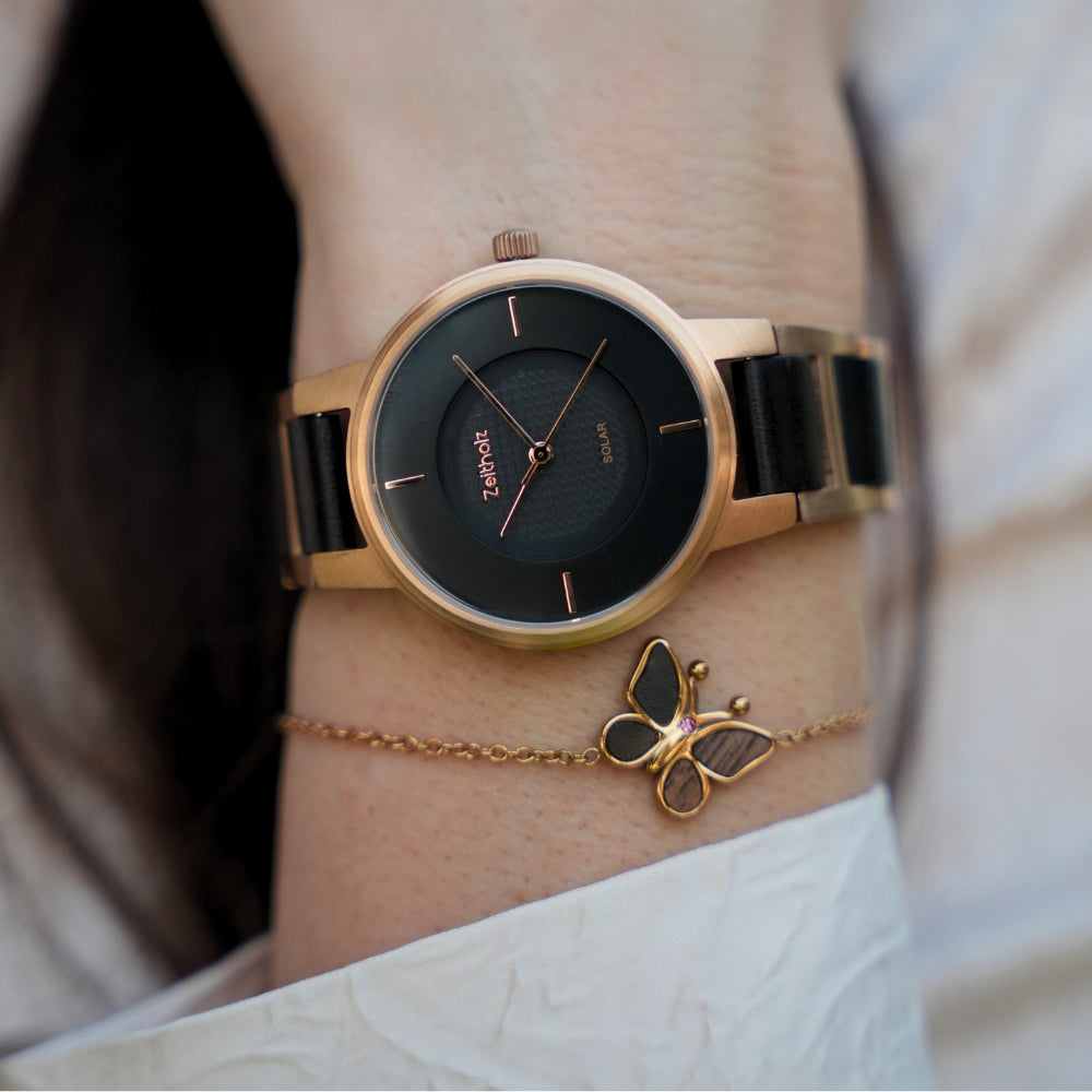 Ultra-light and fully adjustable, the necklace and bracelet transition effortlessly from desk to dinner. Zeitholz combines responsibly sourced materials with meticulous, minimalist design for women who value purposeful, sustainable elegance.