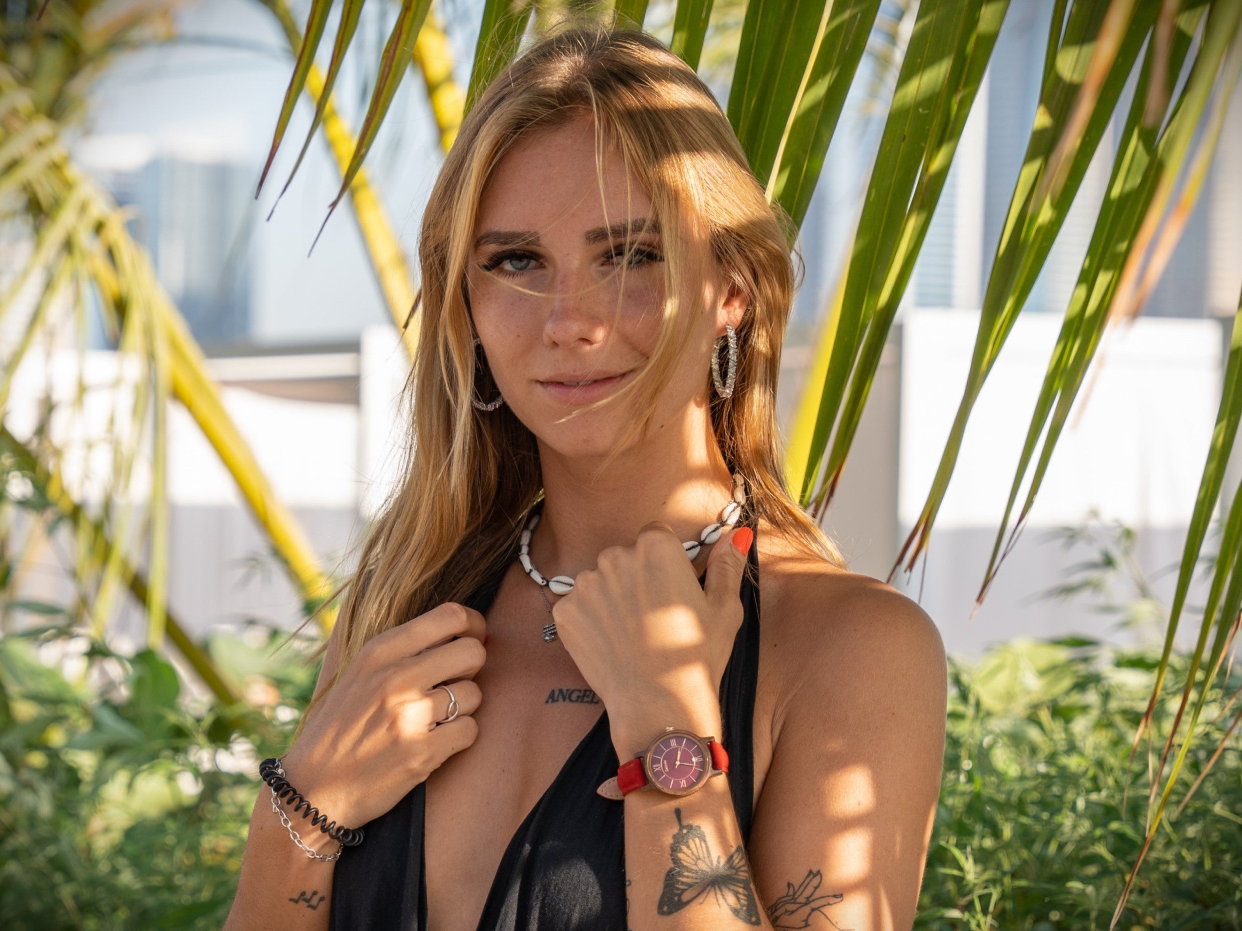 This collection is designed for women looking for a watch that can adapt to any style. Its 36mm wooden case is made of natural walnut wood and contains a Seiko movement that breathes life into this beautiful piece. Aside from its design, its comfort and light weight of only 26 grams make it very versatile. Its black leather strap and the right size make it adaptable to any woman's wrist.