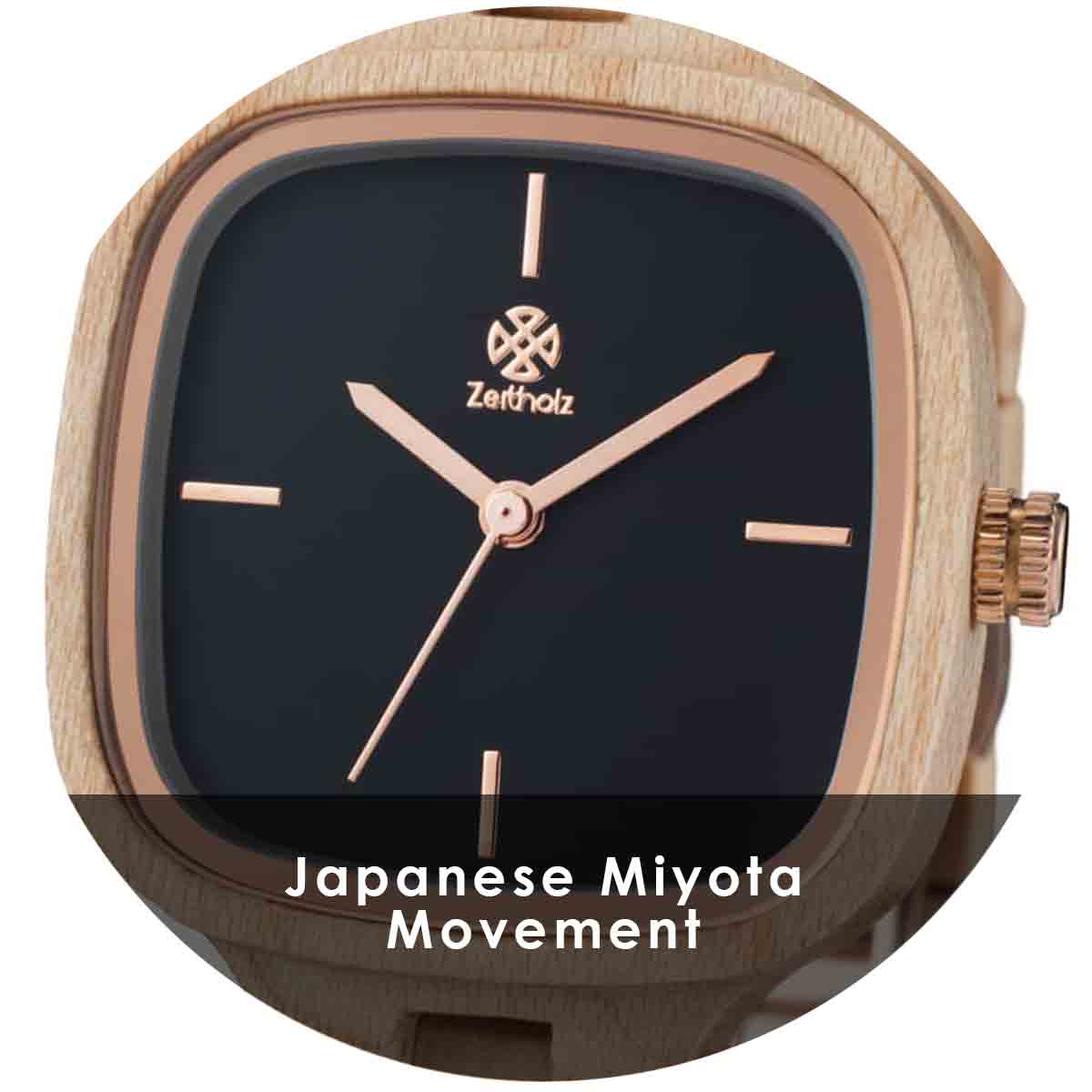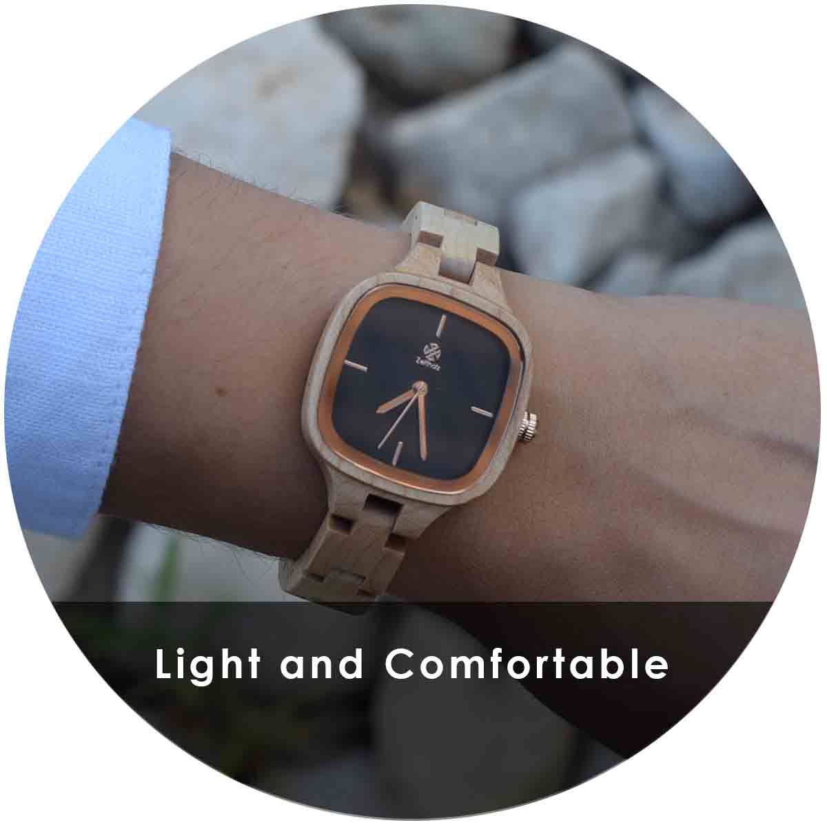 The Rosswein is a light and sophisticated watch made of 100% natural maple wood with an elegant black square dial and rose gold details. Made entirely of wood, it goes perfectly with both casual style and dressier outfits such as blouses or dresses.