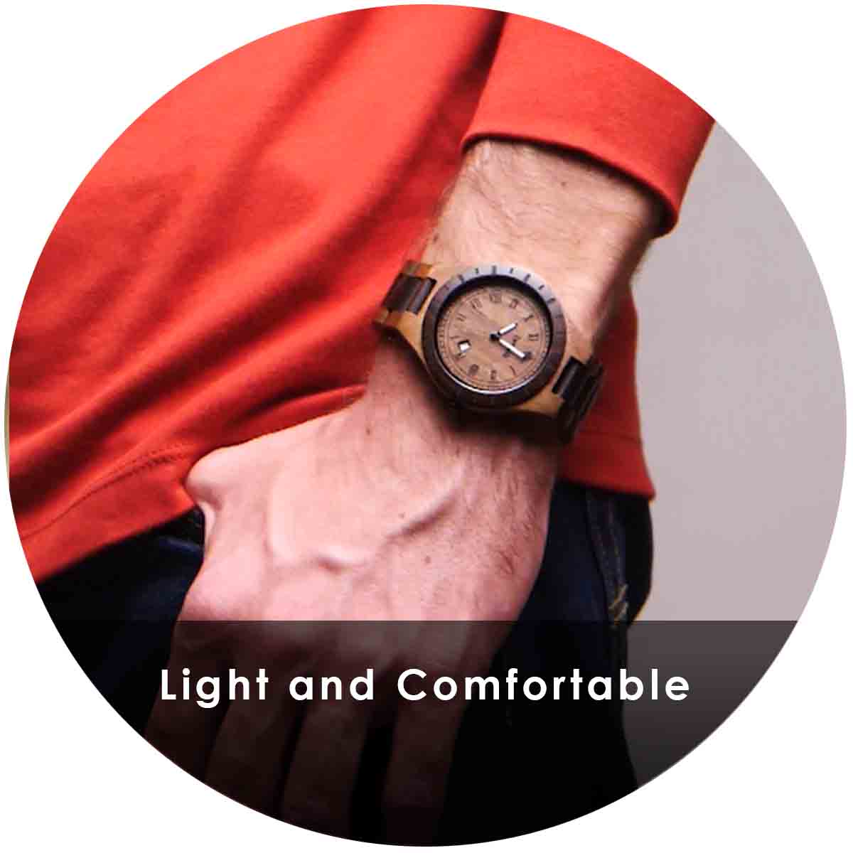 Zittau is the classic wooden watch for men. It is made of 100% natural wood: The case and strap are made of walnut, the dial of sandalwood. This makes it a perfect watch for adventurers and nature lovers. Despite a case size of 44 mm, the watch weighs only 42 grams, which makes it very light on the wrist. In addition, the bracelet can be perfectly adjusted to any wrist size thanks to the possibility of removing or adding additional links.